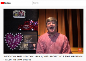 Find out more »""PROJECT 142 "DEDICATION POST ISOLATION" SERIES YouTube EPISODE Archived with SCOT ALBERTSON https://scotalbertson.com FEBRUARY 11, 2022 VALENTINE's DAY YOUTUBE EPISODE https://youtu.be/eOmCs-2ka40