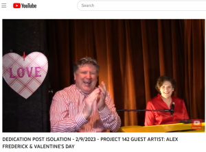 Find out more »**PROJECT 142 "DEDICATION POST ISOLATION" Weekly YouTube Series With SCOT ALBERTSON https://scotalbertson.com FEBRUARY 9, 2023 PROJECT 142 GUEST ARTIST: ALEX FREDERICK (JAZZ PIANIST & VOCALIST) & VALENTINE'S DAY EPISODE Website - www.alexjazz.com PROJECT 142 Video Promotion Support this Episode - **THANK YOU - VAYLE (Multiple postings in PROJECT 142 Event Calendar) **THANK YOU - HIRO HONDA (Posting in PROJECT 142 Event Calendar) **FEB. 11, 2023 - LOUISA POSTER PERFORMS (NYC) **FEB. 14, 2023 - CRAIG POMRANZ PERFORMS (NYC) PANGEA -…