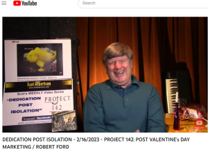 Find out more »**PROJECT 142 "DEDICATION POST ISOLATION" Weekly YouTube Series with SCOT ALBERTSON https://scotalbertson.com FEBRUARY 16, 2023 PROJECT 142: POST VALENTINE'S DAY MARKETING EPISODE **PROJECT 142 Video Promotion Support this Episode - **THANK YOU - PPI RECORDING / CHIP FABRIZI **FEB. 19, 2023 - 8:30p.m. - ROBERT C. FORD LIVE (NYC) **FEB. 19, 2023 - 3:00p.m. - MARTY EIGEN & AYANA LOWE LIVE - N.J. **MARCH 5, 2023 - 4:00p.m. - JACKIE DRAPER LIVE (NYC) **THANK YOU - ALEX FREDERICK - FEB.…