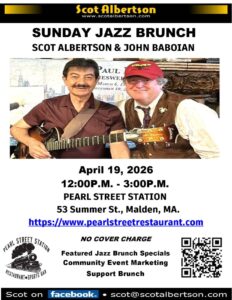 Find out more »**PROJECT 142 "DEDICATION AROUND THE NATION" Video Marketing & Interview Series With SCOT ALBERTSON: Host - Producer - Vocalist Website: https://scotalbertson.com Facebook Page: https://facebook.com/scotalbertson PROJECT 142 Facebook Page - https://facebook.com/project142nyc **JAZZ BRUNCH POSTPONED DUE TO BLIZZARD - NEW DATE - APRIL 19, 2026 - NOON thru 3:00P.M. DECEMBER 17, 2025 **HAPPY HOLIDAYS Episode / CHRISTMAS MUSIC Medley in this Episode / JAN. 25, 2026 SCOT ALBERTSON & JOHN BABOIAN SUNDAY JAZZ BRUNCH RETURN ENGAGEMENT at PEARL STREET STATION RESTAURANT in…