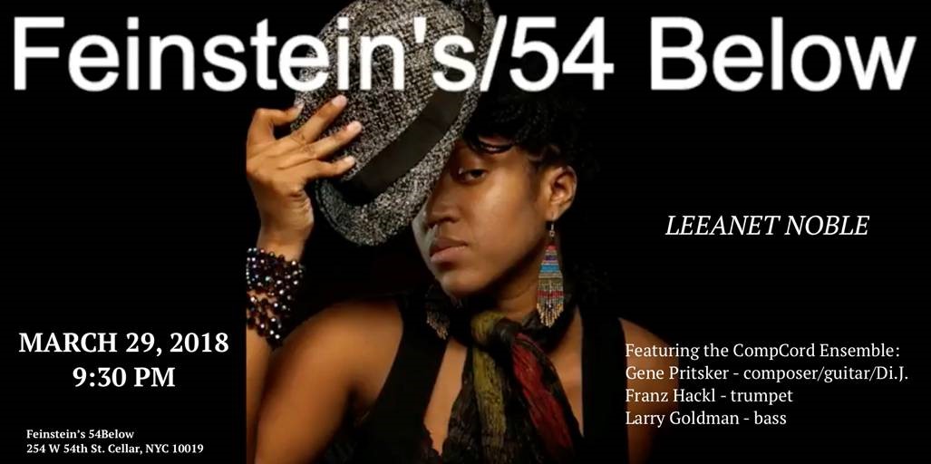 Thursday – March 29, 2018 – 9:30p.m. – Feinstein’s 54 Below – NYC – LEEANET NOBLE & COMPCORD ENSEMBLE – 254 West 54th St. – www.54below.com