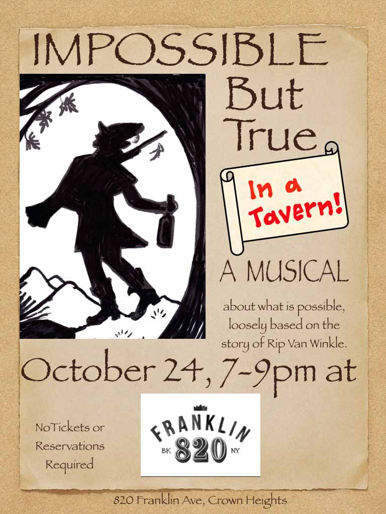 Tuesday – October 24, 2017 – 7:00p. – 9:00p. – Brooklyn NY – DAN FURMAN’S “IMPOSSIBLE BUT TRUE” (A Musical) – Franklin 820 – 820 Franklin Ave., Crown Heights/